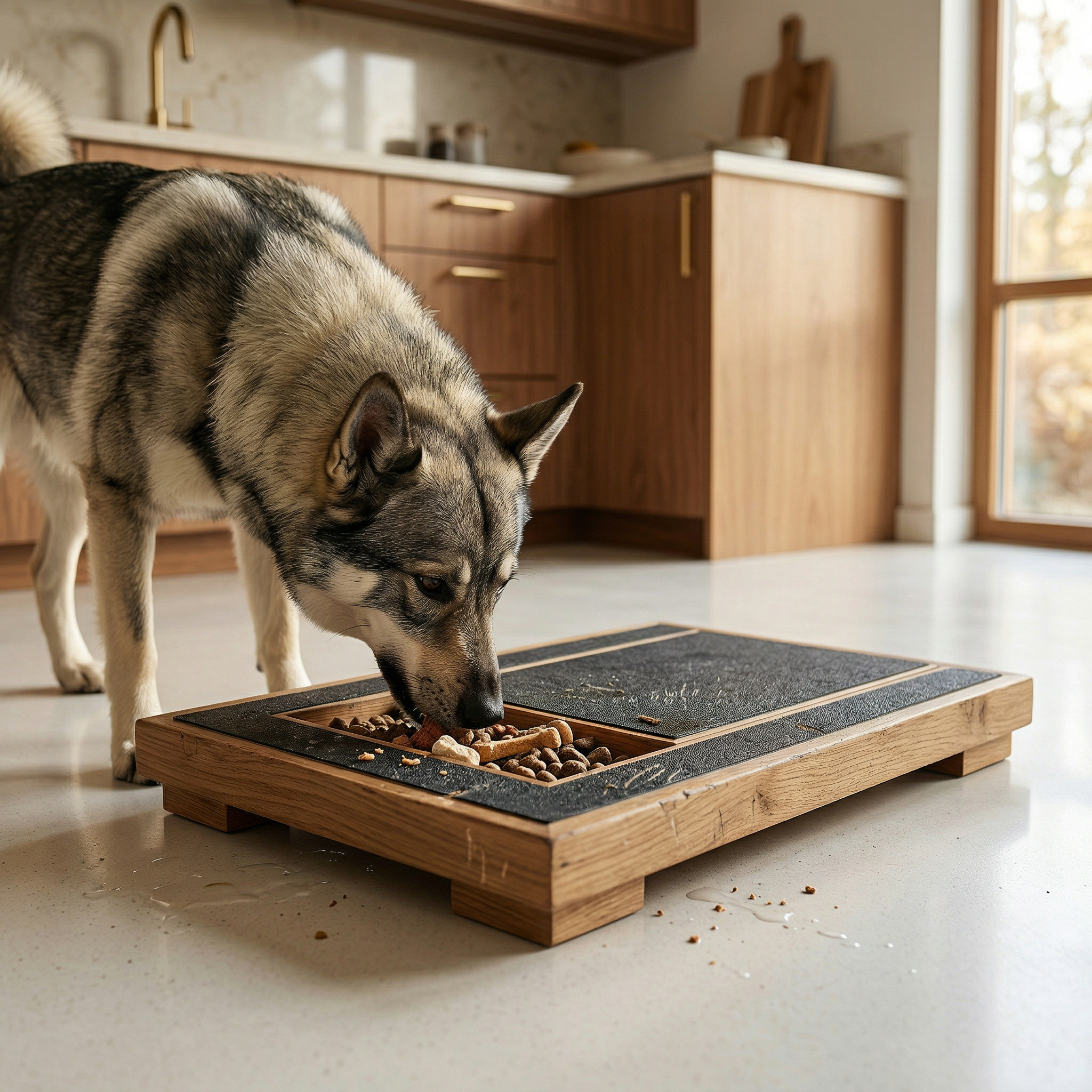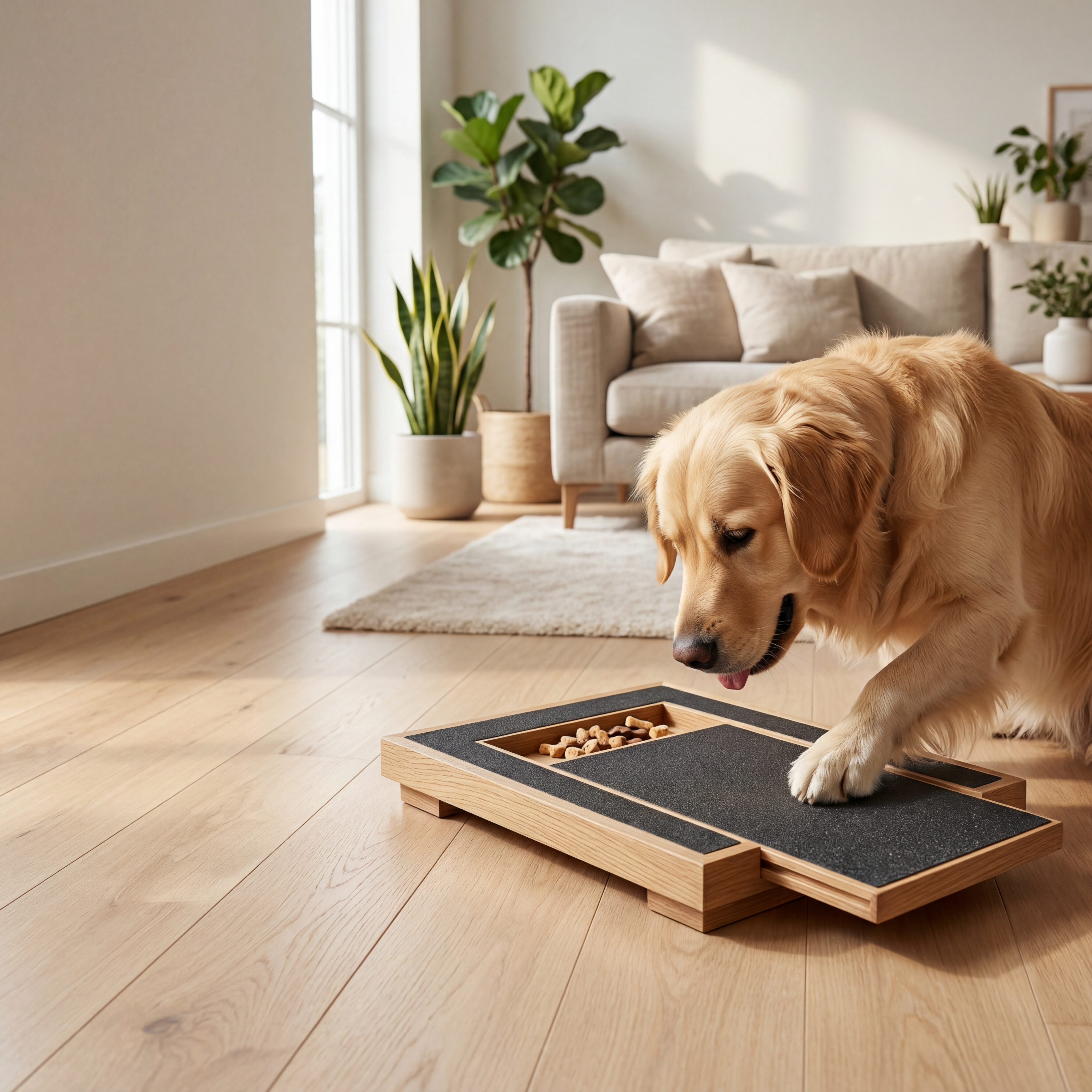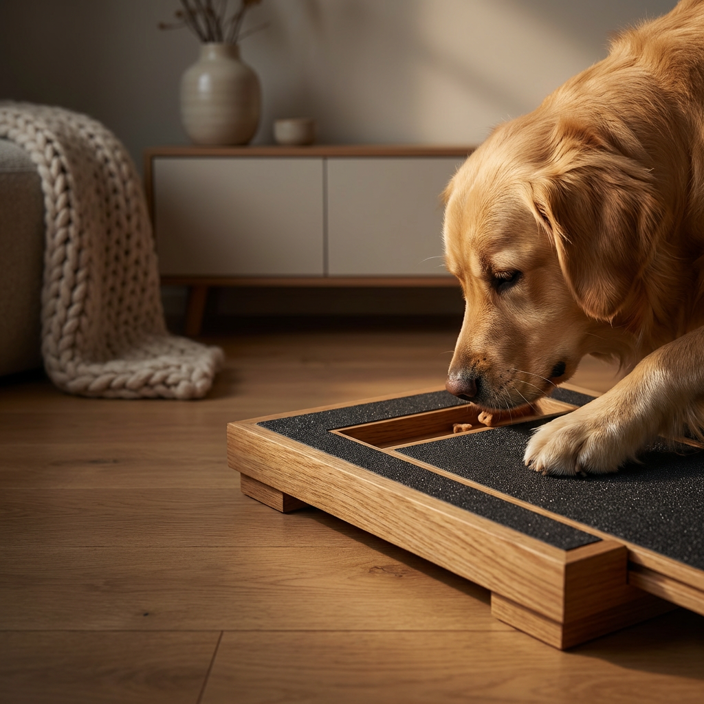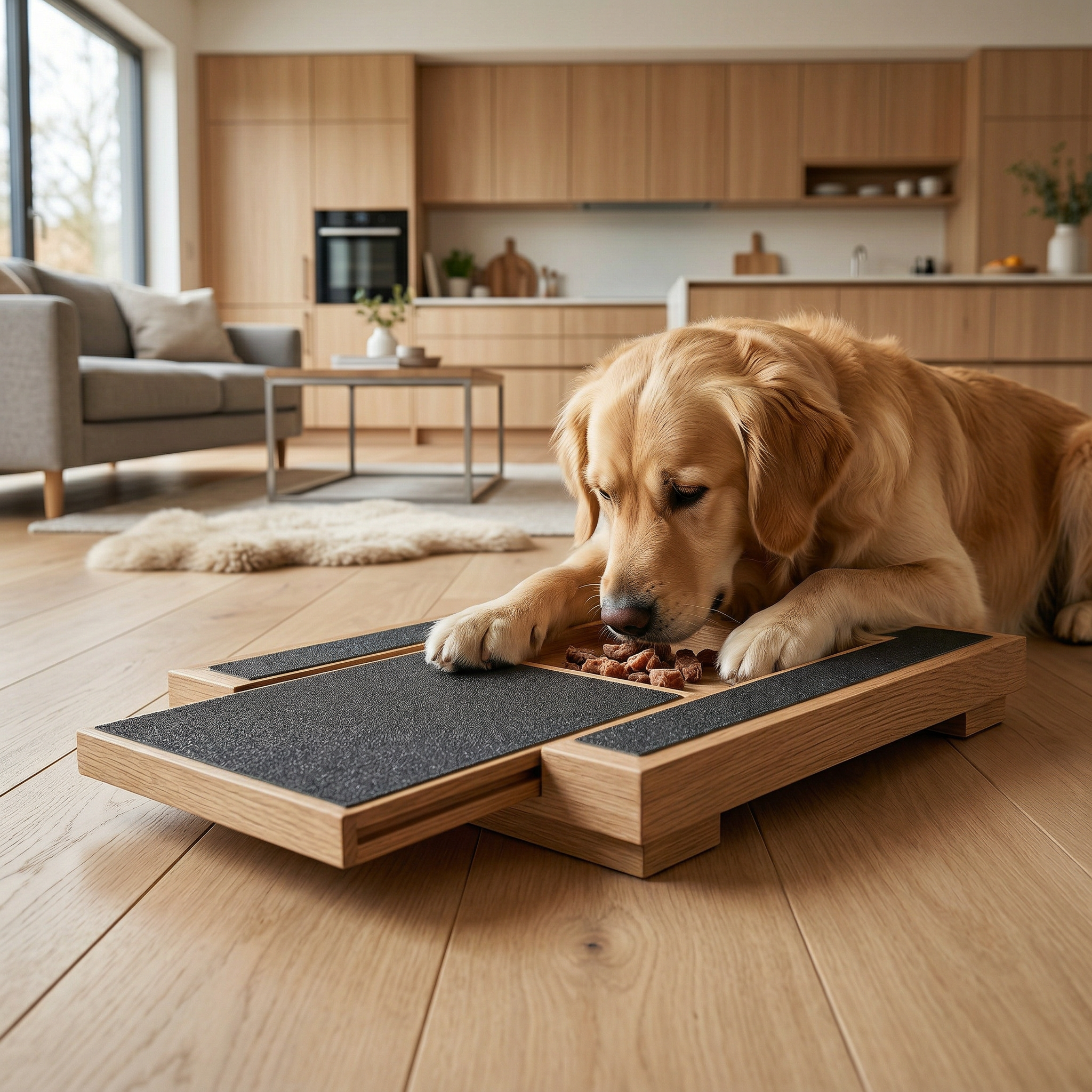 Lägg godbitar i facket och låt din hund fila klorna naturligt medan den letar efter belöningen.