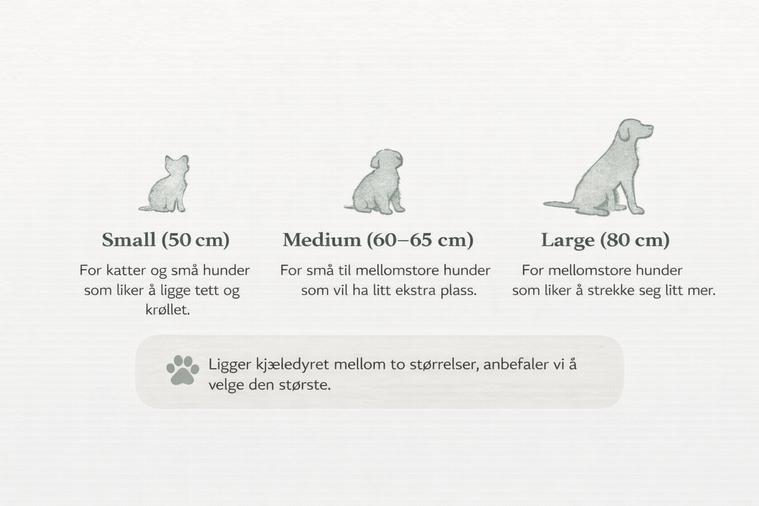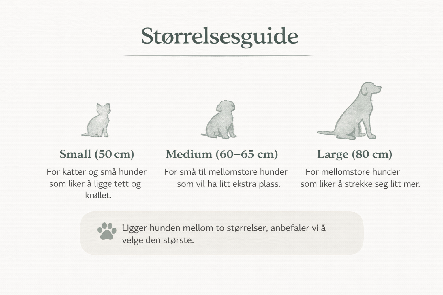 Ligger kjæledyret mellom to størrelser, anbefaler vi å velge den største for ekstra komfort.